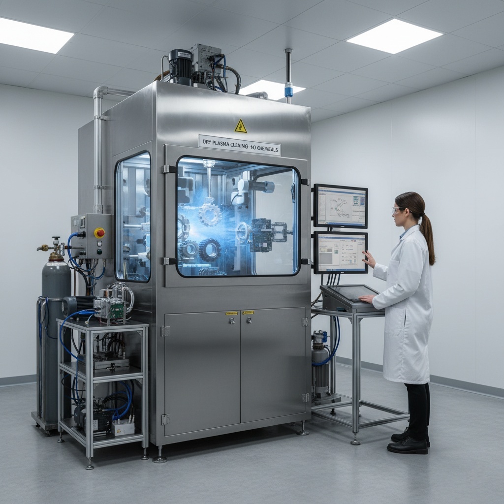 Plasma removes organic residues and activates surfaces without solvents or liquids, supporting cleaner, safer, and more sustainable production.