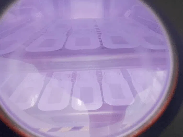 Plasma cleaning removes organic contaminants without solvents, supporting aseptic surface preparation for medical devices and disposable components.