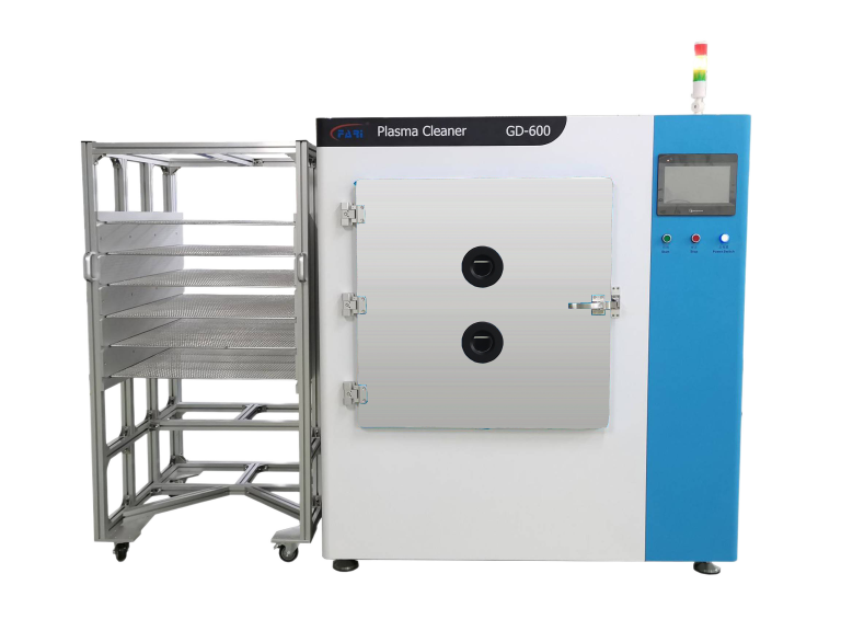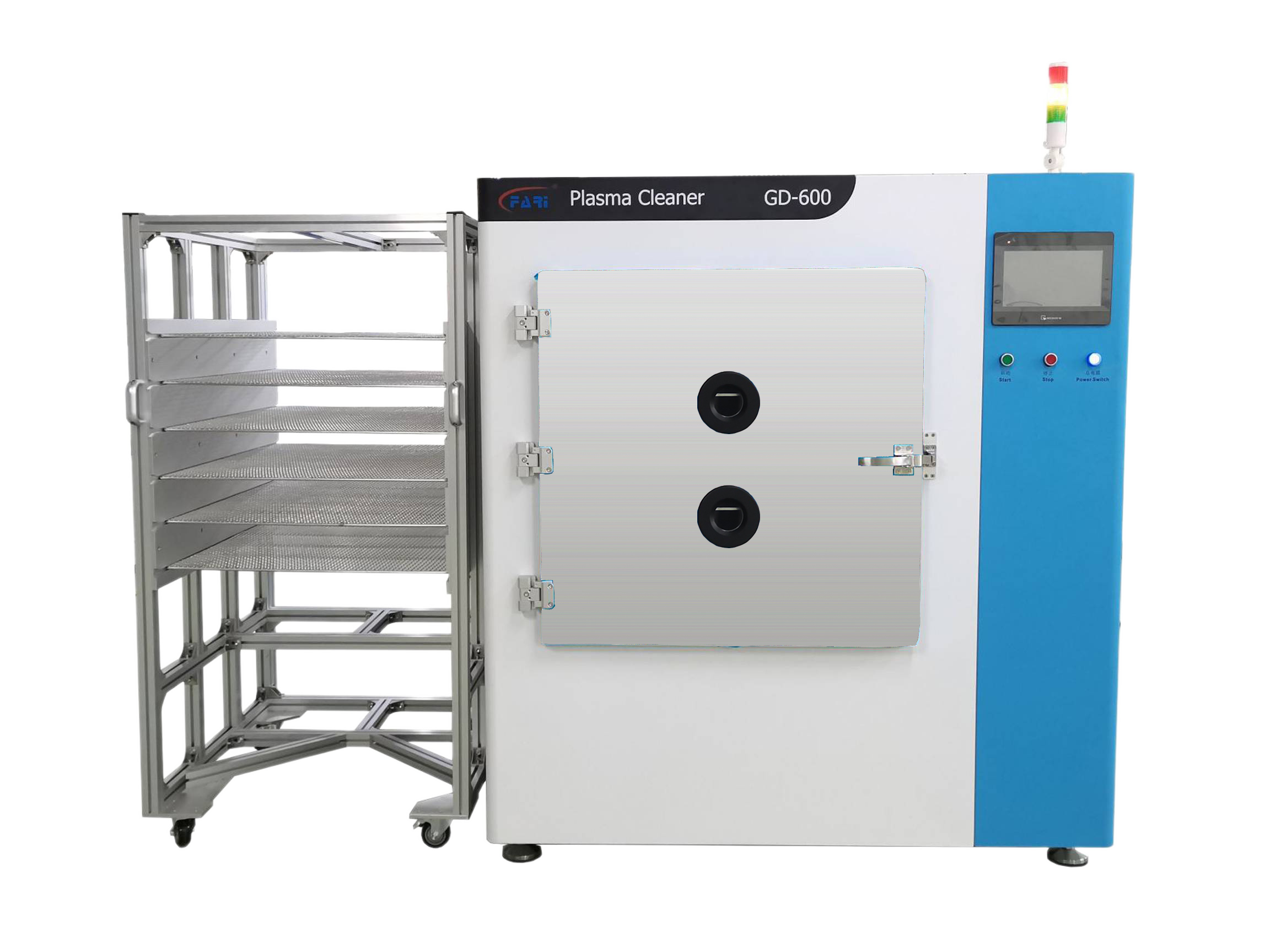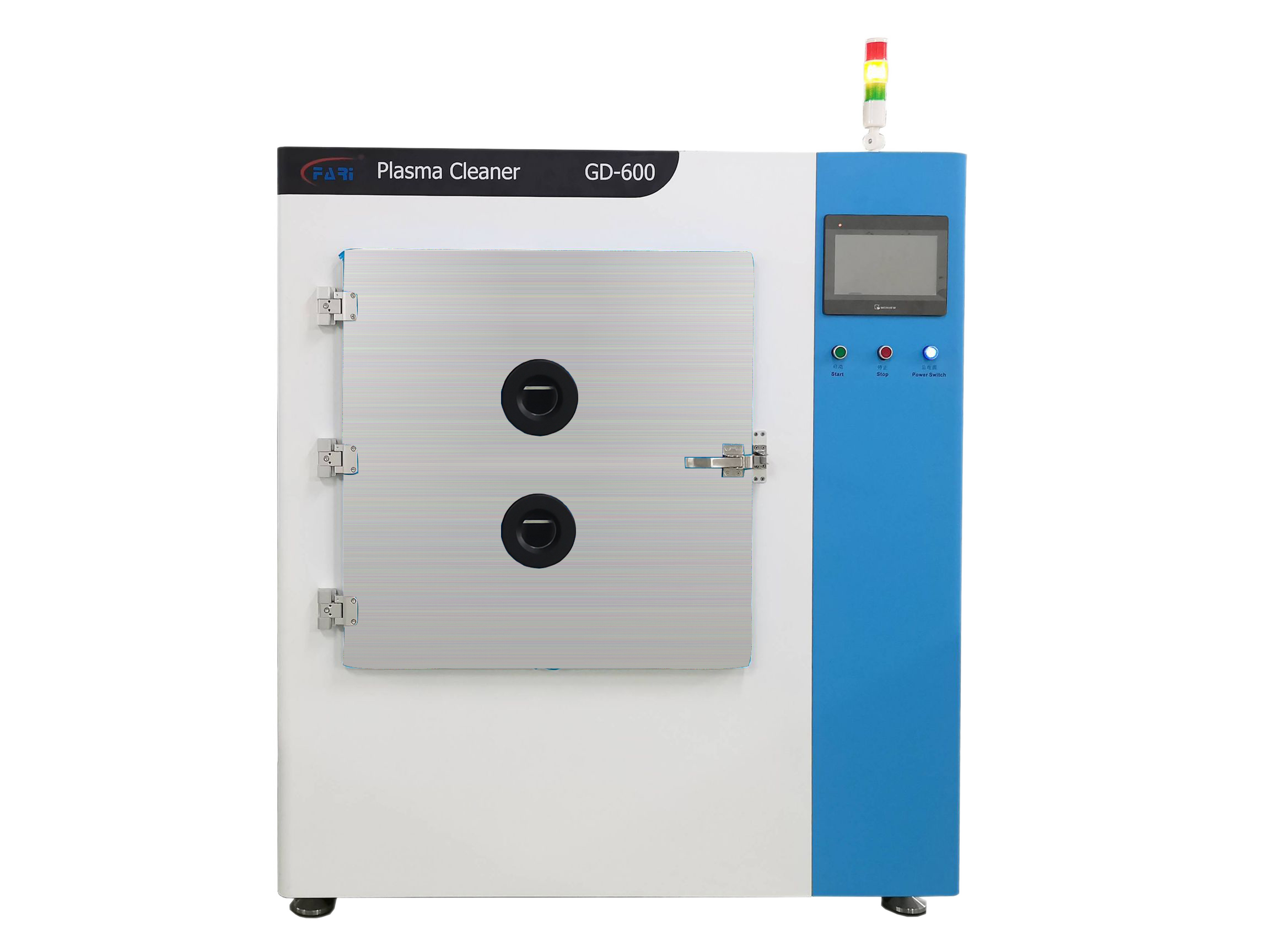 600L vacuum plasma cleaner with PLC touchscreen control, corrosion-resistant 316 stainless steel and aluminum alloy chamber, adjustable 100–5000W power and uniform electrode design for scalable production and lab use.