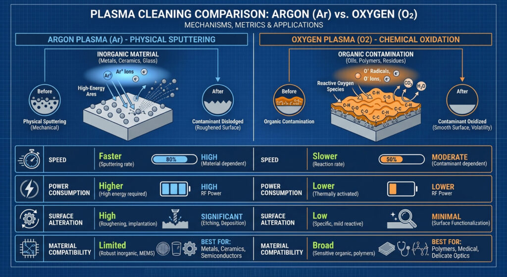 The choice between argon and oxygen plasma dramatically affects which of these mechanisms dominate and how effectively they address your specific contamination challenges.